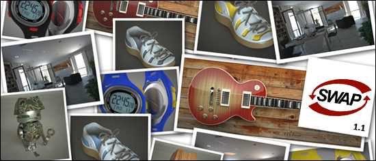 SWAP, mladší parťák fryrenderu, byl před několika týdny upgradován. Nejvíce patrným vylepšením ve verzi 1.1 je tzv. multi-swapping, což znamená, že nyní můžete měnit materiály u libovolného počtu objektů ve scéně. Představu o praktickém využití multi-swappingu si můžete udělat z následujících obrázků. Jedná se o materiálové variace jednoho jediného renderu, provedené v reálném čase. Autorem modelu je John Strieder a model byl součástí jeho příspěvku do soutěže 'The Package They Carry':