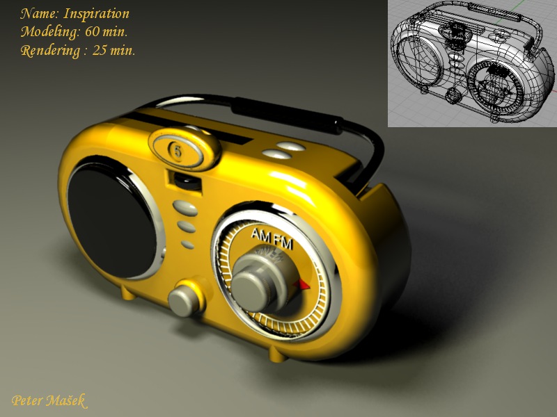 Peter Mašek je mladý modelář, který se věnuje 3D již více než rok. Zaměřuje se spíš na model než na render a převážně modeluje do speed modelingových soutěží. Od počátku se věnuje modelování výrobků, ale v poslední době začíná i s ateliérovým modelováním.